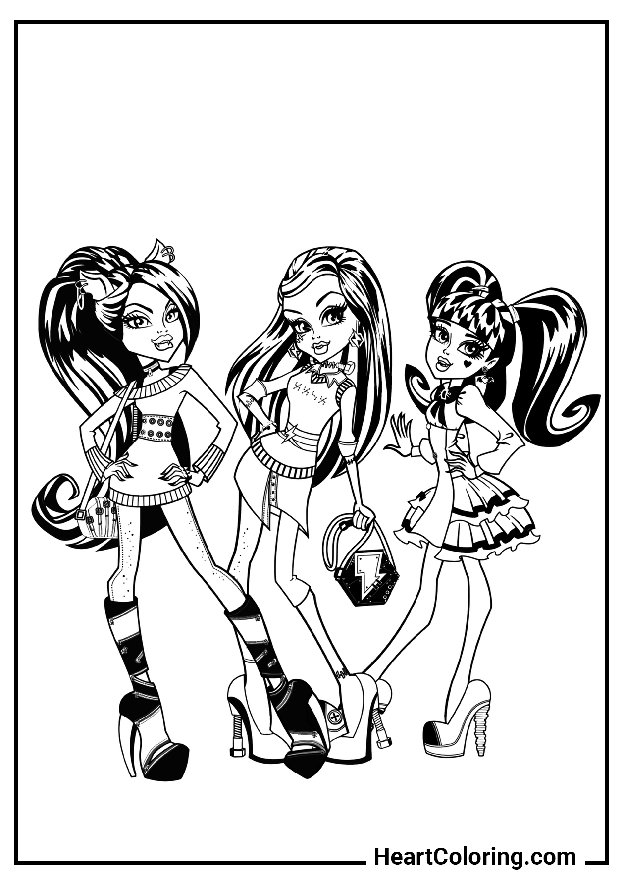 In our collection, you’ll find a variety of Monster High coloring pages featuring all your favorite characters. You can download them in different formats, print them for free, or even color them online right on our website!