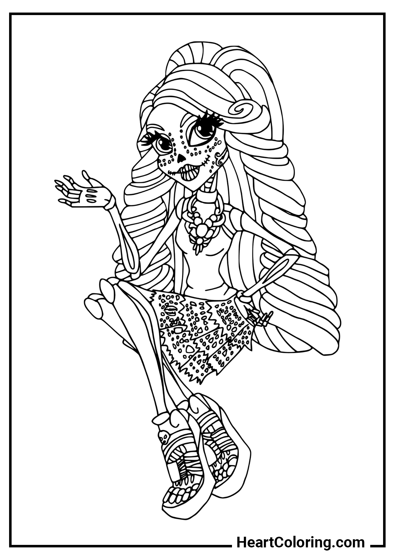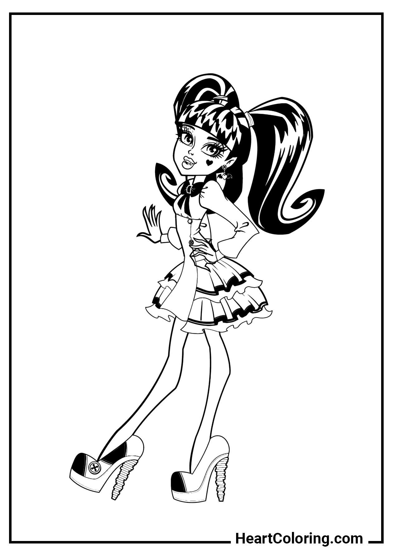 You can download any Monster High coloring page for free in PDF or JPG format, or print them instantly on Letter or A4 paper.