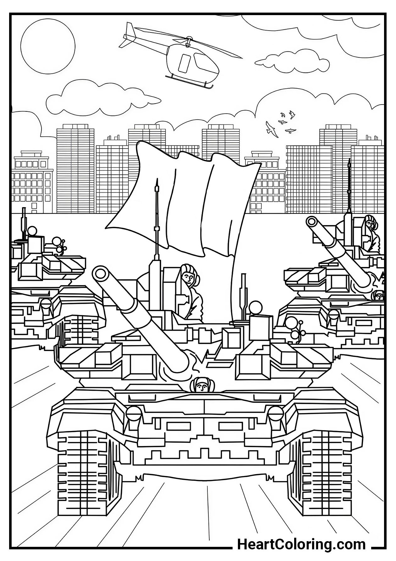 Como se sabe, a los niños les interesan más las páginas para colorear de vehículos militares. Sin embargo, nos esforzamos por desarrollar escenas únicas también para la parte femenina del público. La dificultad de colorear varía ampliamente, lo que permite seleccionar una imagen interesante para niños de cualquier edad.