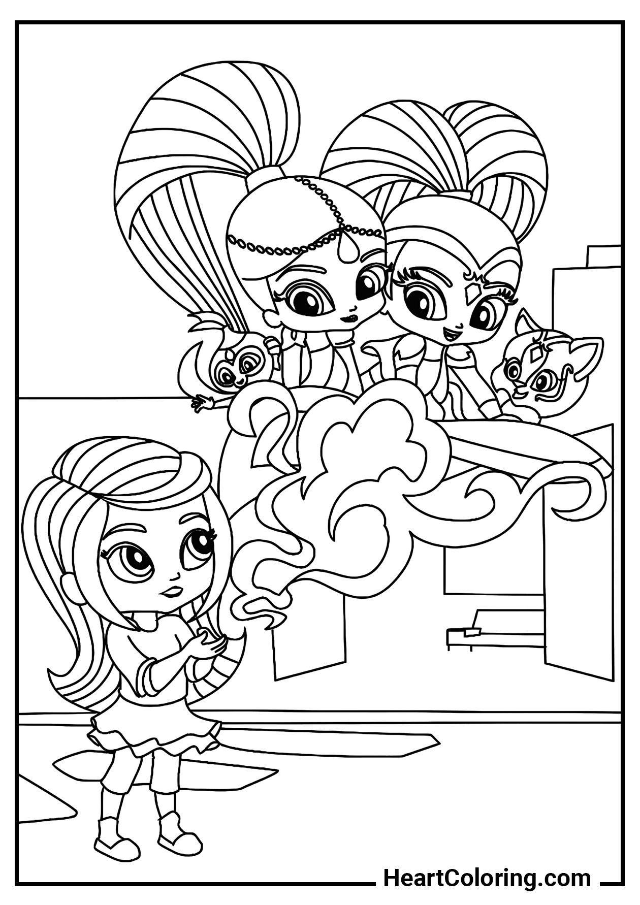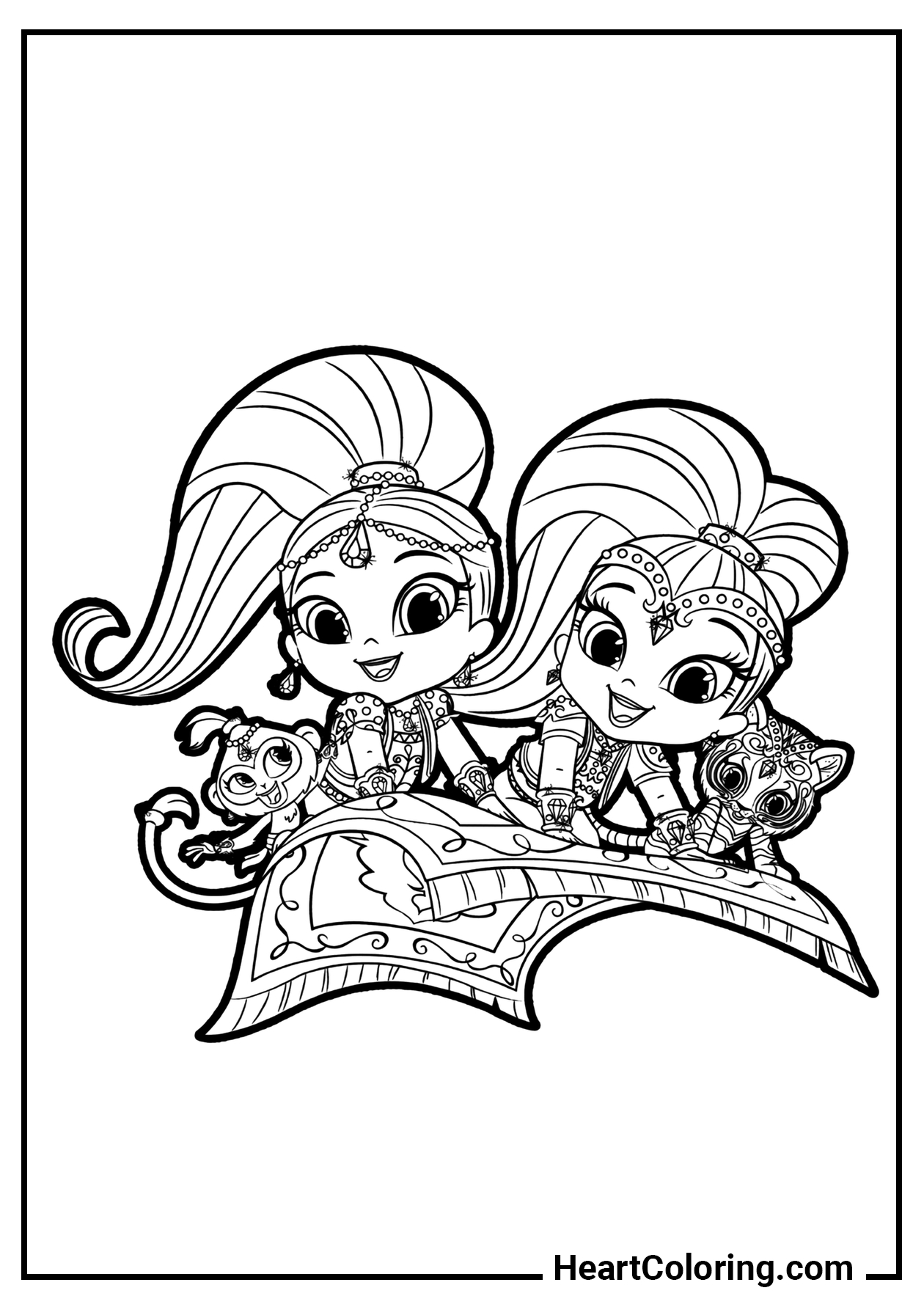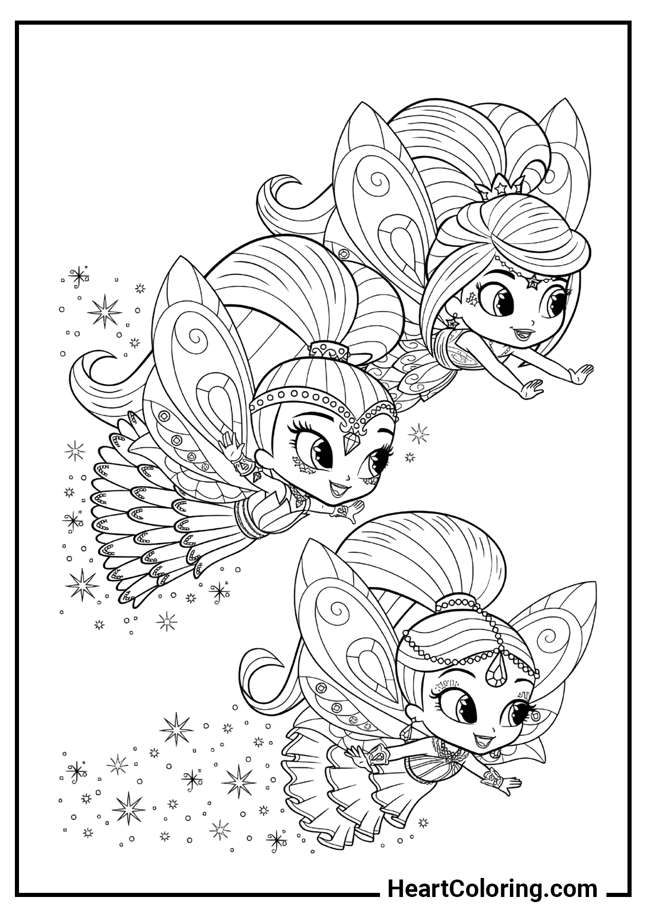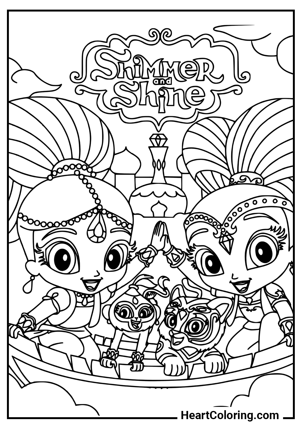Una collezione originale di disegni da colorare dedicata al cartone animato Shimmer e Shine, che farà felici le bambine di tutte le età. Puoi scaricare le immagini nei formati PDF e JPG, stamparle su fogli A4 oppure colorarle direttamente online su HeartColoring.com!