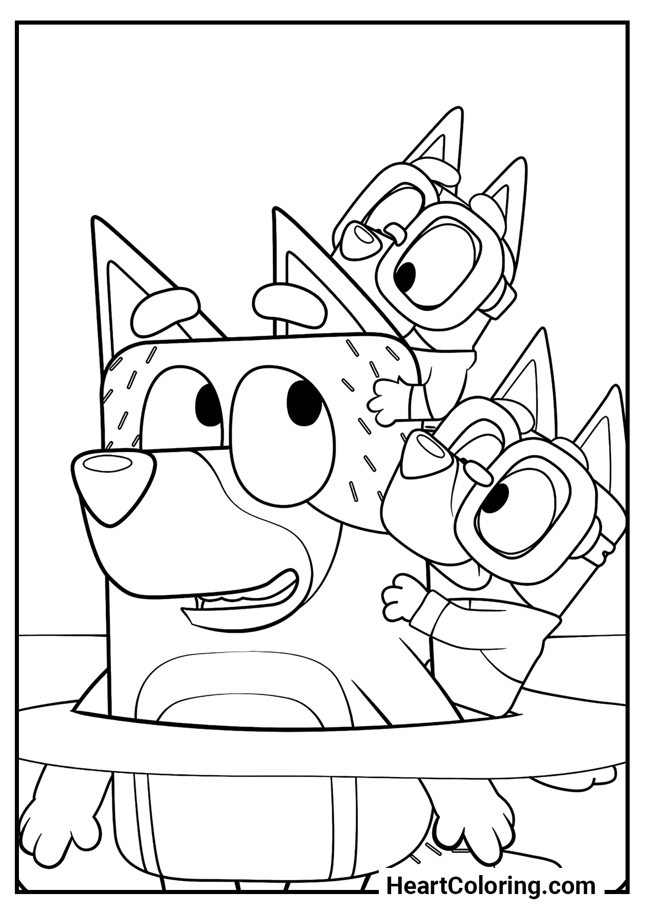 - Chilli Heeler – mama Blue i Bingo, pracuje na lotnisku i uwielbia spędzać czas aktywnie.