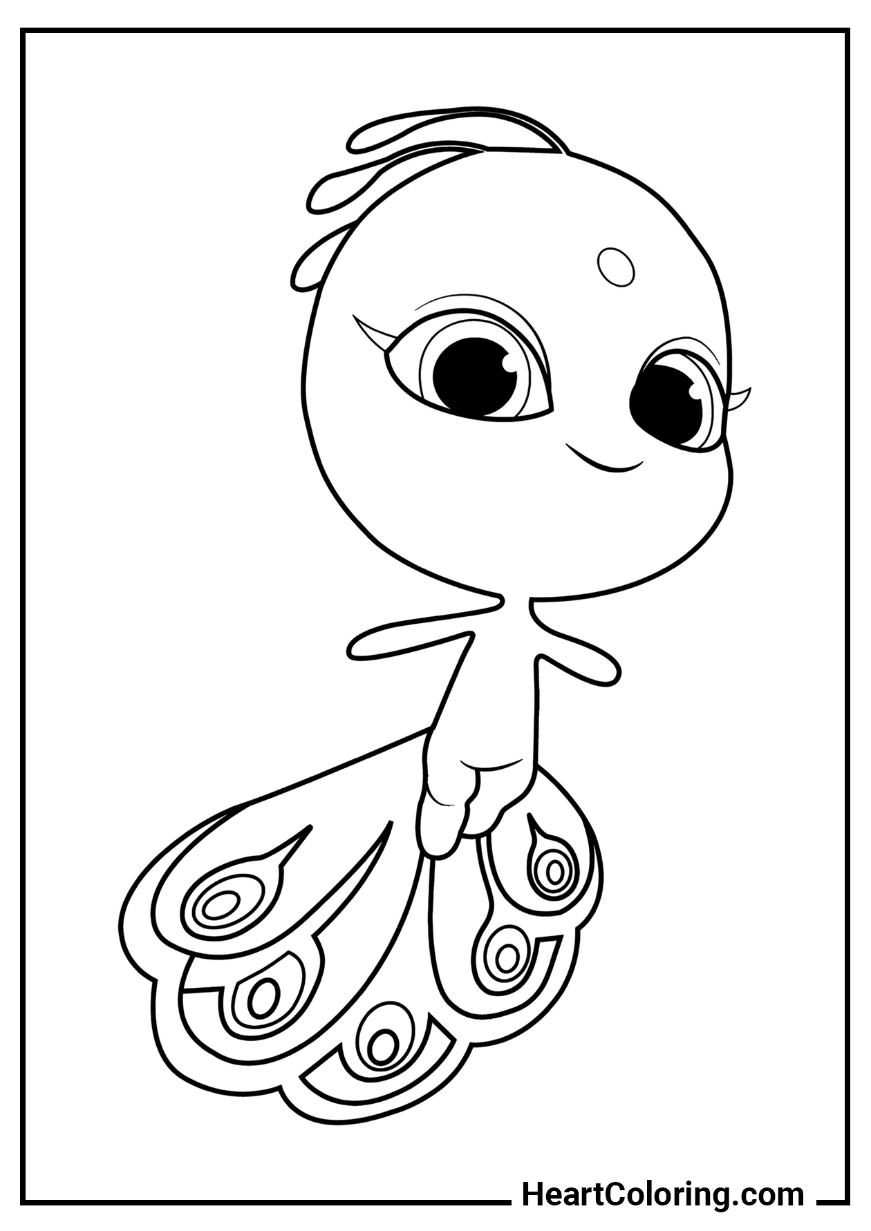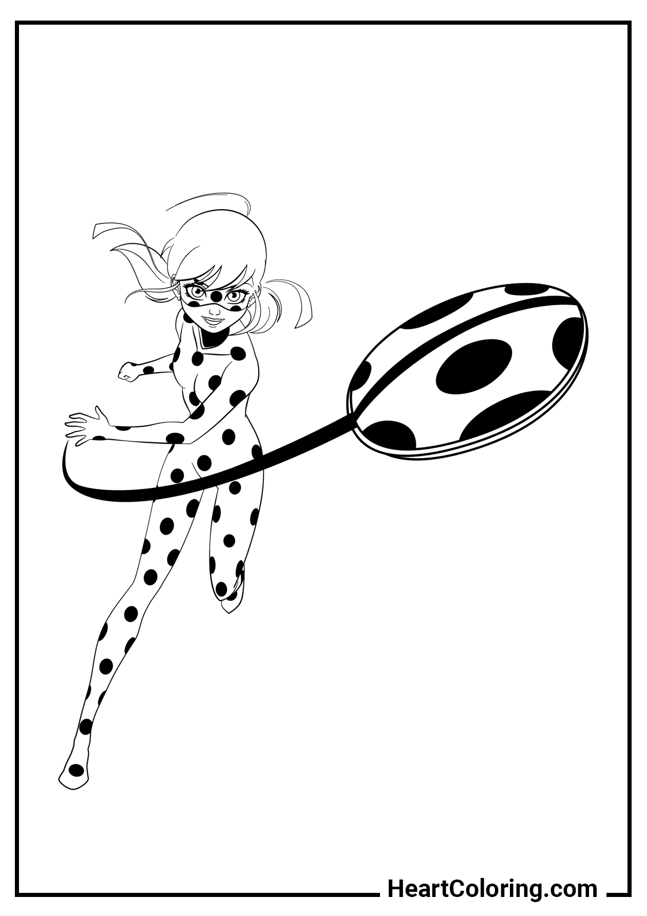 Dzięki nadzwyczajnym mocom Biedronka z łatwością balansuje na ulicznej latarni. Na tej kolorowance wygląda, jakby czekała – może na swojego wiernego towarzysza?