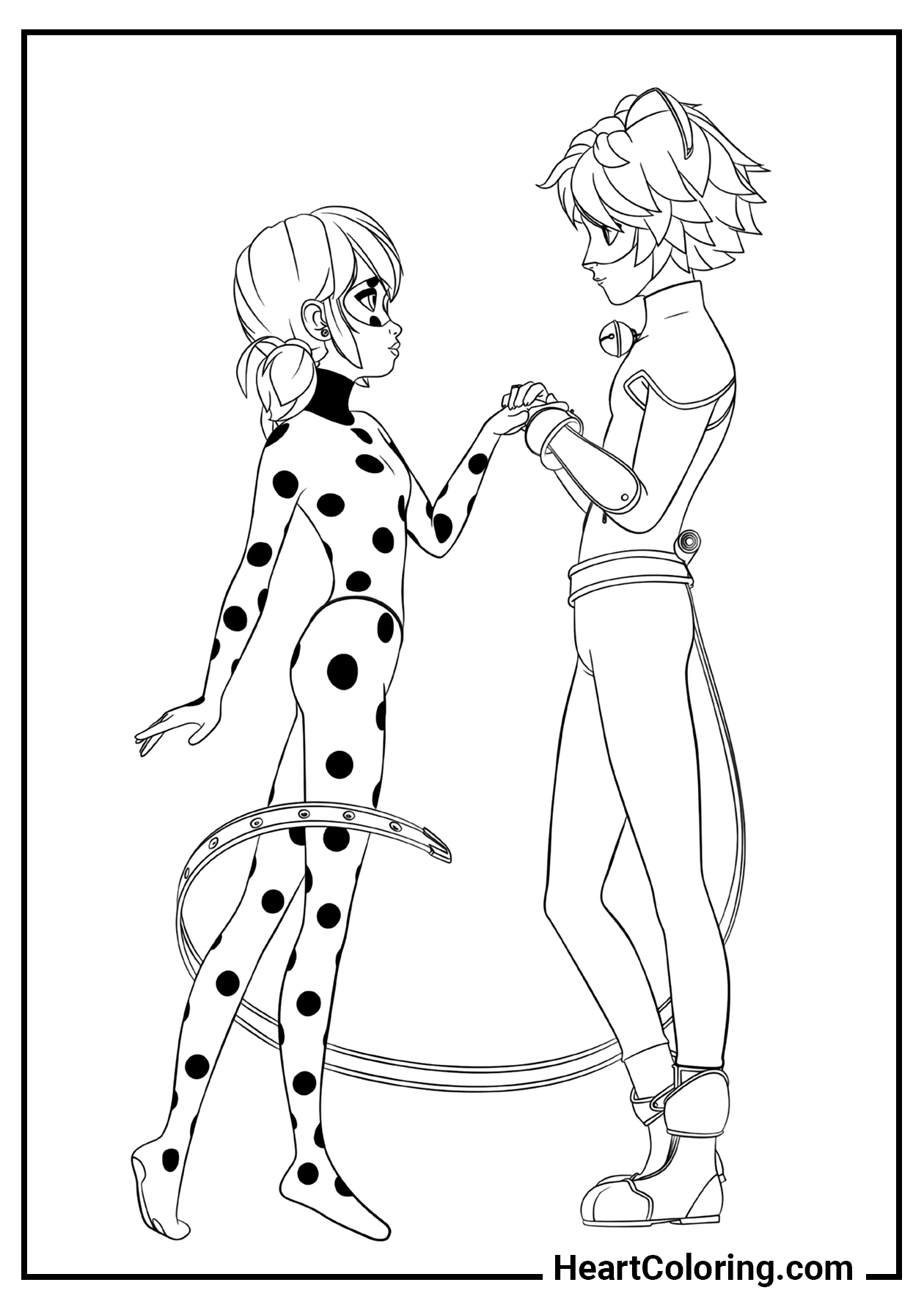 Kolorowanki Miraculum: Biedronka i Czarny Kot dla dzieci