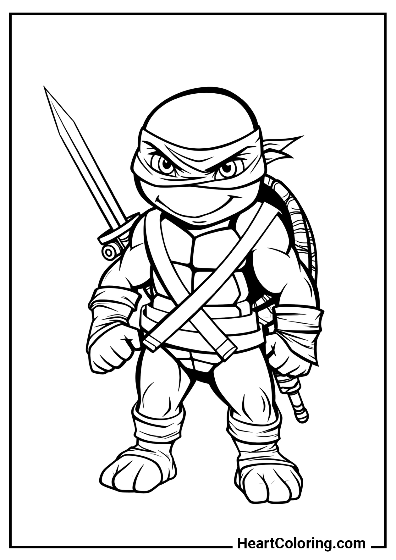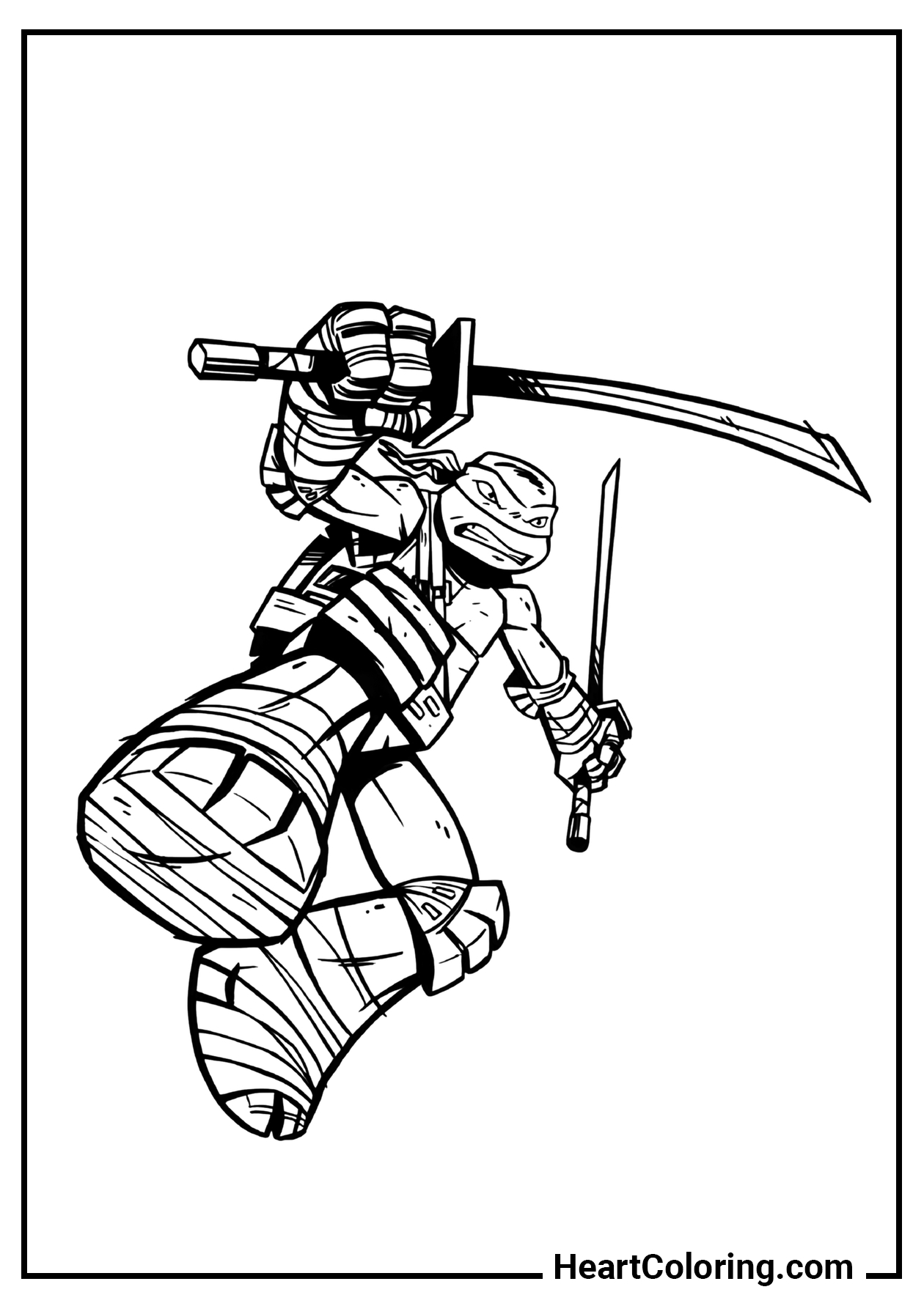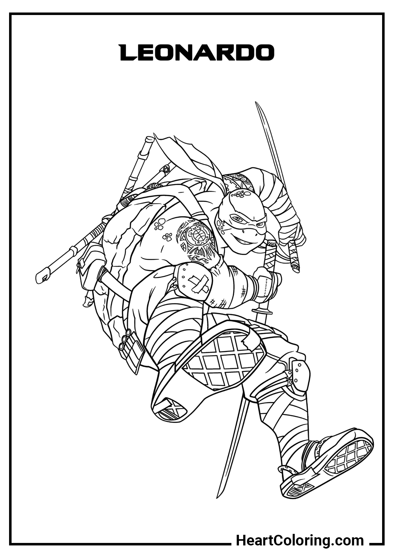 Gdy Leonardo rzuca się do ataku, nikt go nie powstrzyma! Na tej kolorowance widzimy go w pełnym ruchu – skoncentrowanego, spokojnego i gotowego na wszystko.