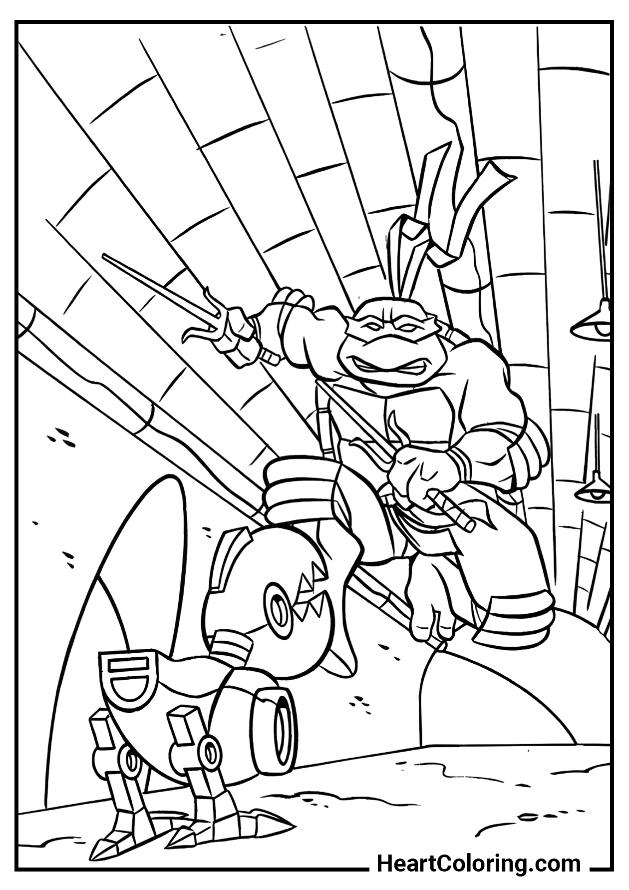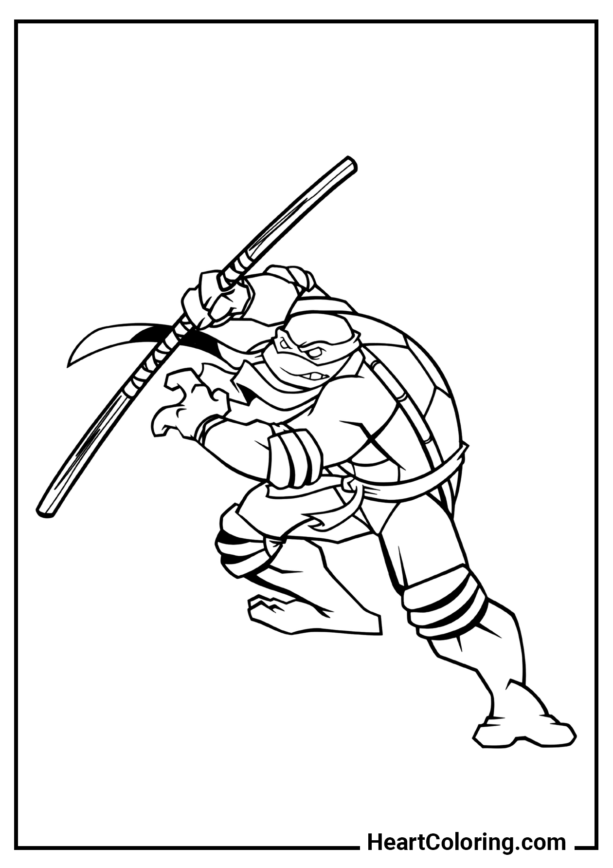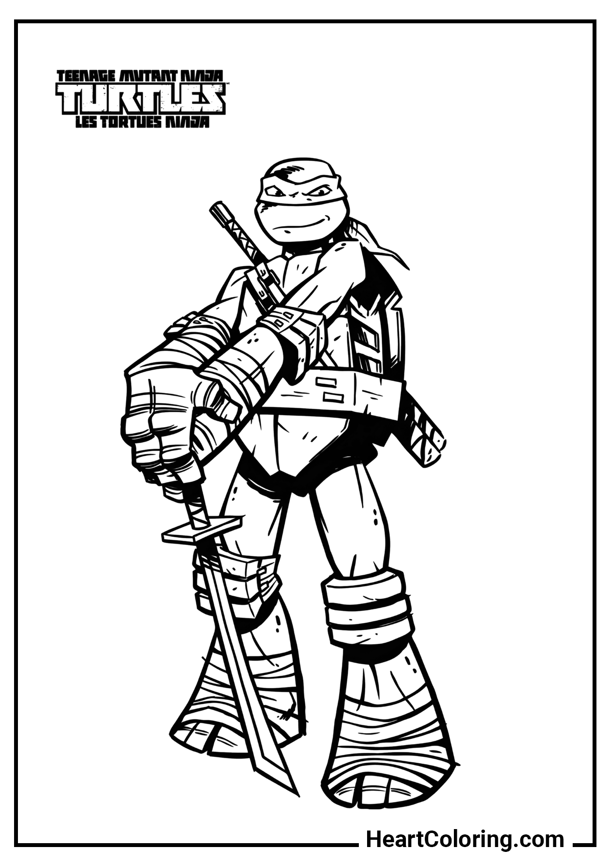 Gdy Leonardo rzuca się do ataku, nikt go nie powstrzyma! Na tej kolorowance widzimy go w pełnym ruchu – skoncentrowanego, spokojnego i gotowego na wszystko.