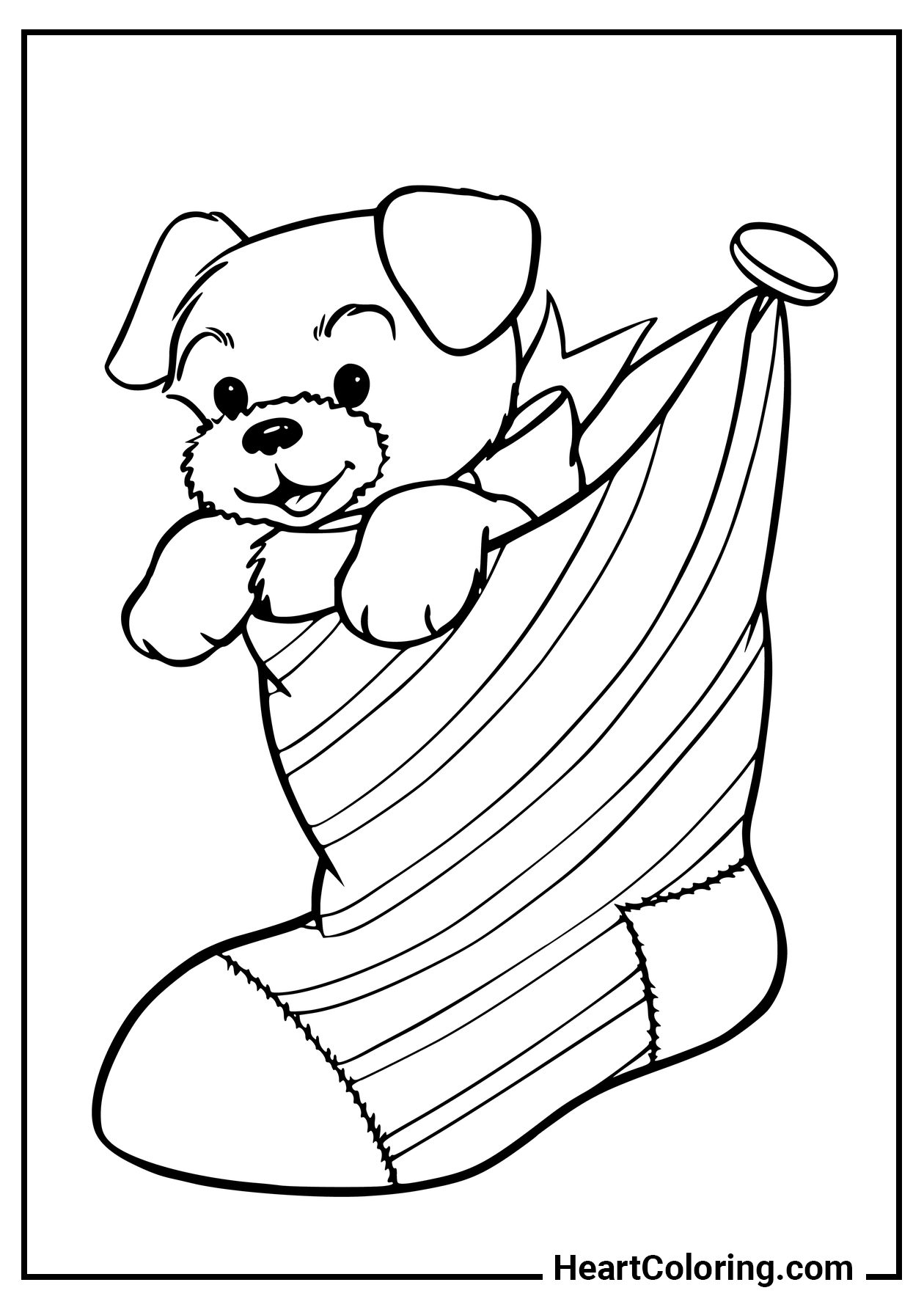 Zaczynamy naszą przygodę z kolorowankami od małego, świątecznego obrazka. Widać na nim zabawnego szczeniaczka siedzącego na chodniku z balonikami w pyszczku.
