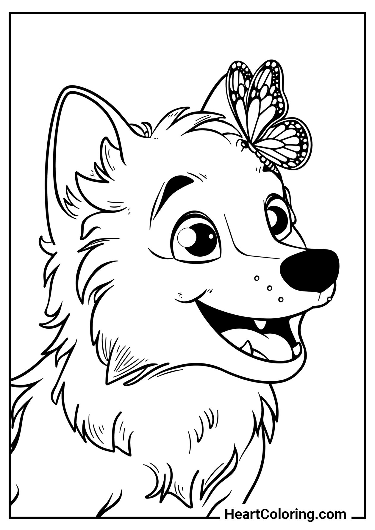 Kolejna kolorowanka przedstawia uroczą dziewczynkę–szczeniaczka. Ma długą sierść, więc nosi kokardkę na głowie. Jej obróżkę zdobi zawieszka w kształcie plasterka pomarańczy, co dodaje jej wyjątkowego uroku.