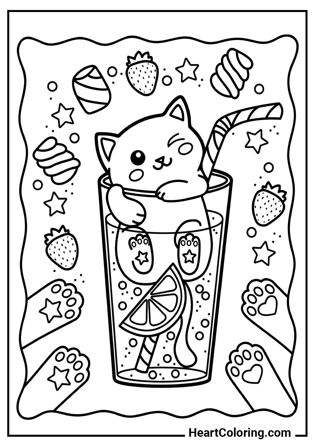 O próximo desenho gratuito nos apresentará um gatinho fofo que adora brincar. Ele está deitado de costas, estendendo as patas, e parece incrivelmente fofo. Dá vontade de coçar sua barriguinha macia!