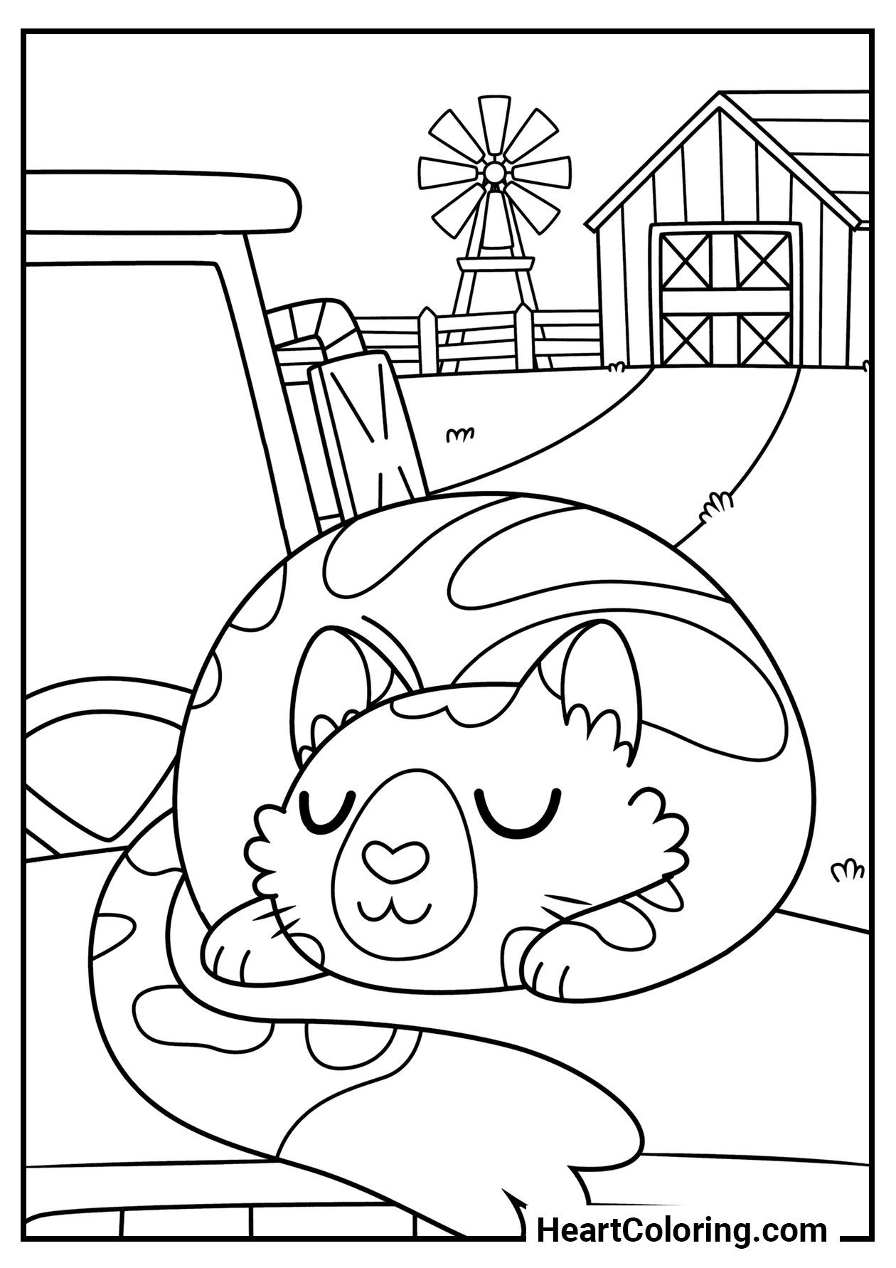 Esta gata é bem cuidada e majestosa, passeando pelo jardim entre os vasos de flores. A propósito, as flores não distraem do principal desenho, pelo contrário, o complementam.