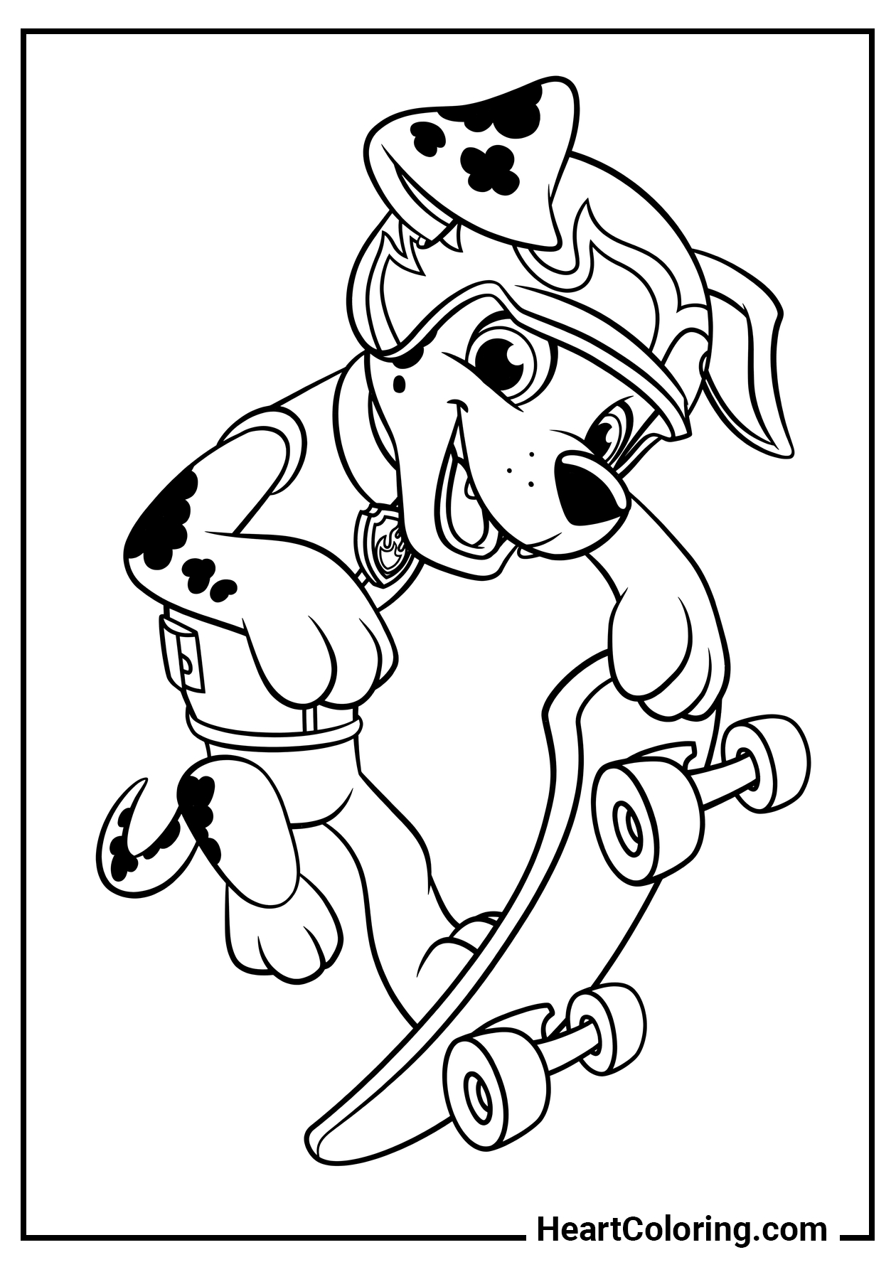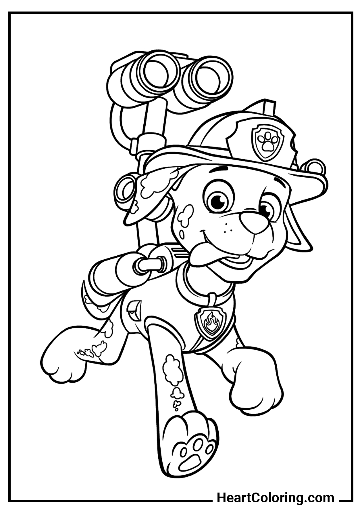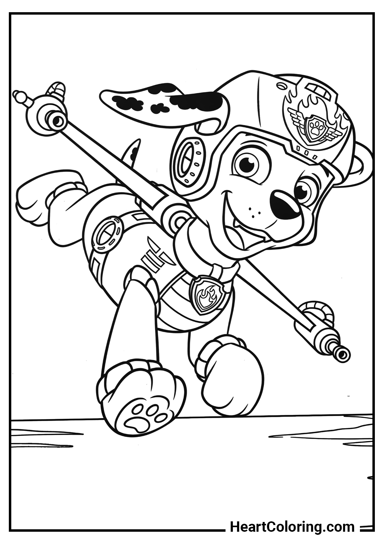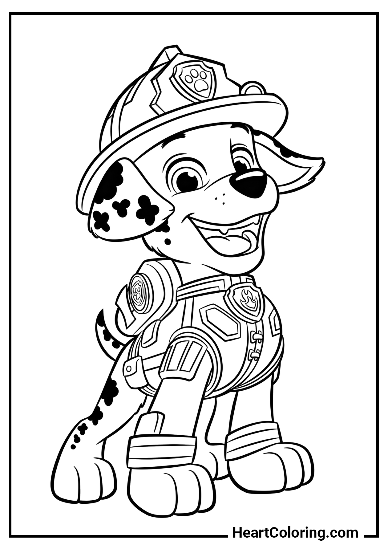 - Маршалл – представитель породы далматин, в команде выполняет функции пожарного и, в некоторых ситуациях, полевого медика.