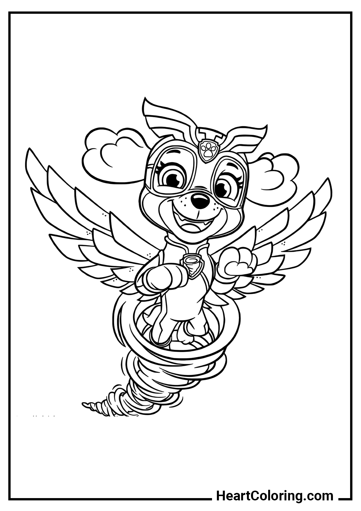 - Скай – представитель породы кокапу, в команде выполняет функции пилота-спасателя. В большинстве случаев именно Скай осуществляет наблюдение за ситуацией и поддержку с воздуха.