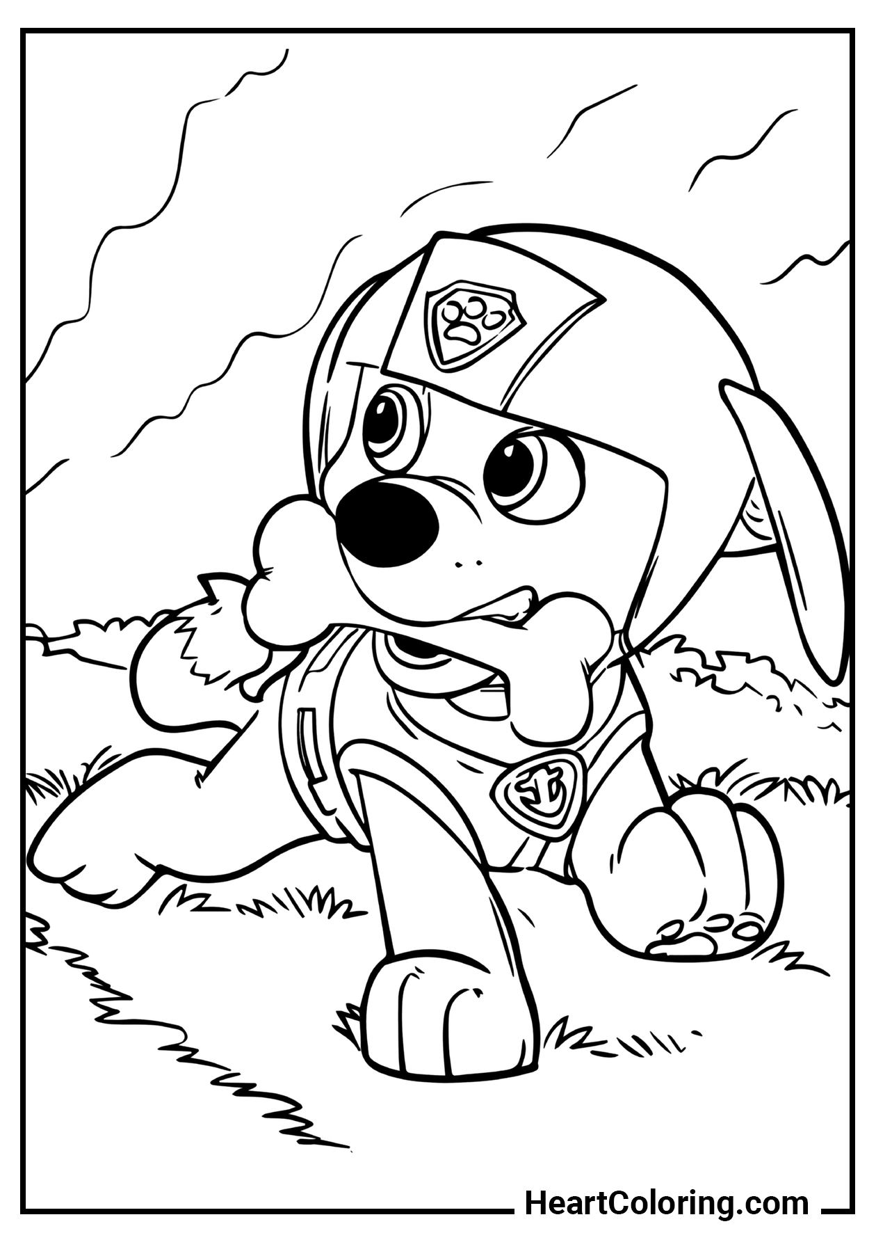 На следующей раскраске Райдер вызывает щенков на базу. Для этого он отправляет специальный сигнал на передатчики, установленные в их ошейниках. Кажется, для героев вызов стал небольшой неожиданностью.