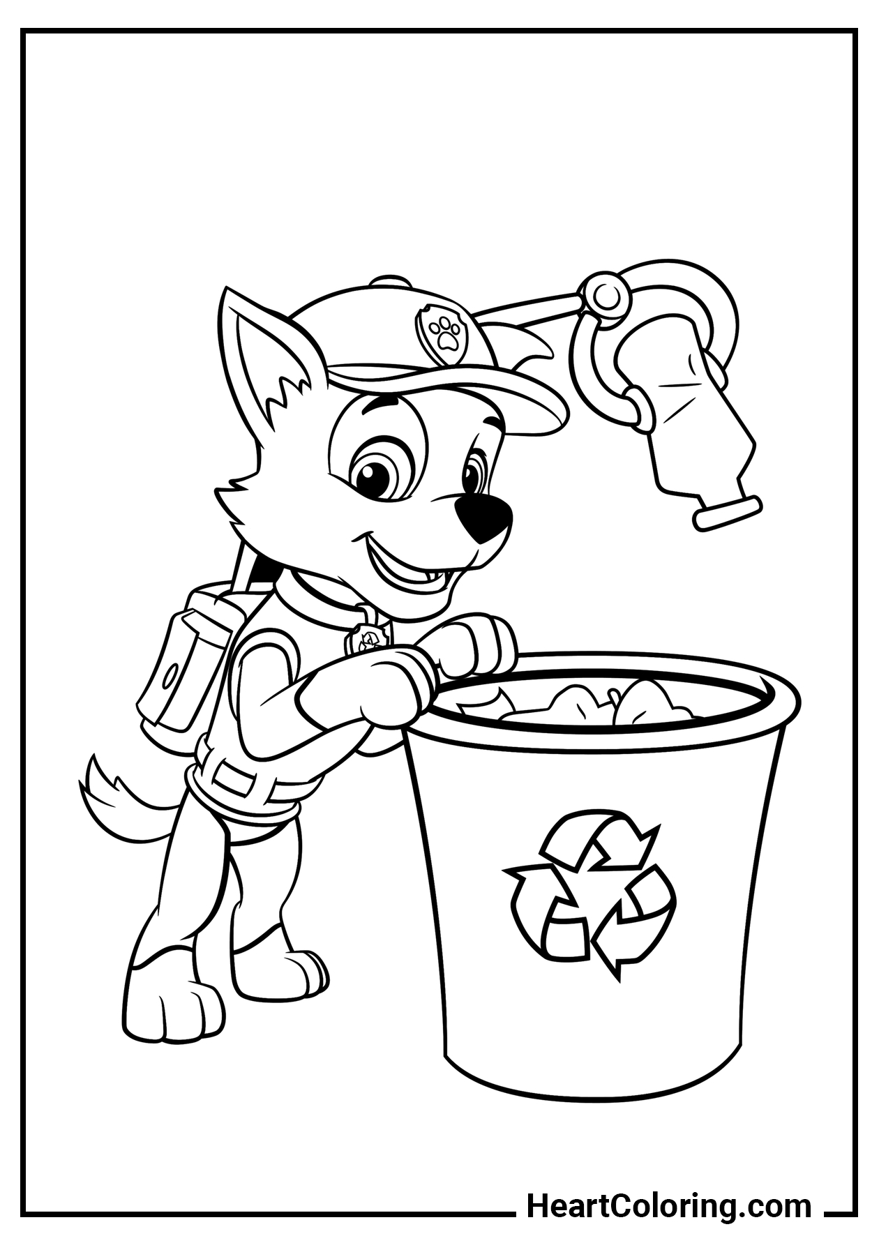 Рокки – член щенячьего патруля, в обязанности которого входит охрана окружающей среды, забота об экологическом состоянии планеты, переработка отходов и многое другое. Персонаж ездит на зелёном рециклере.