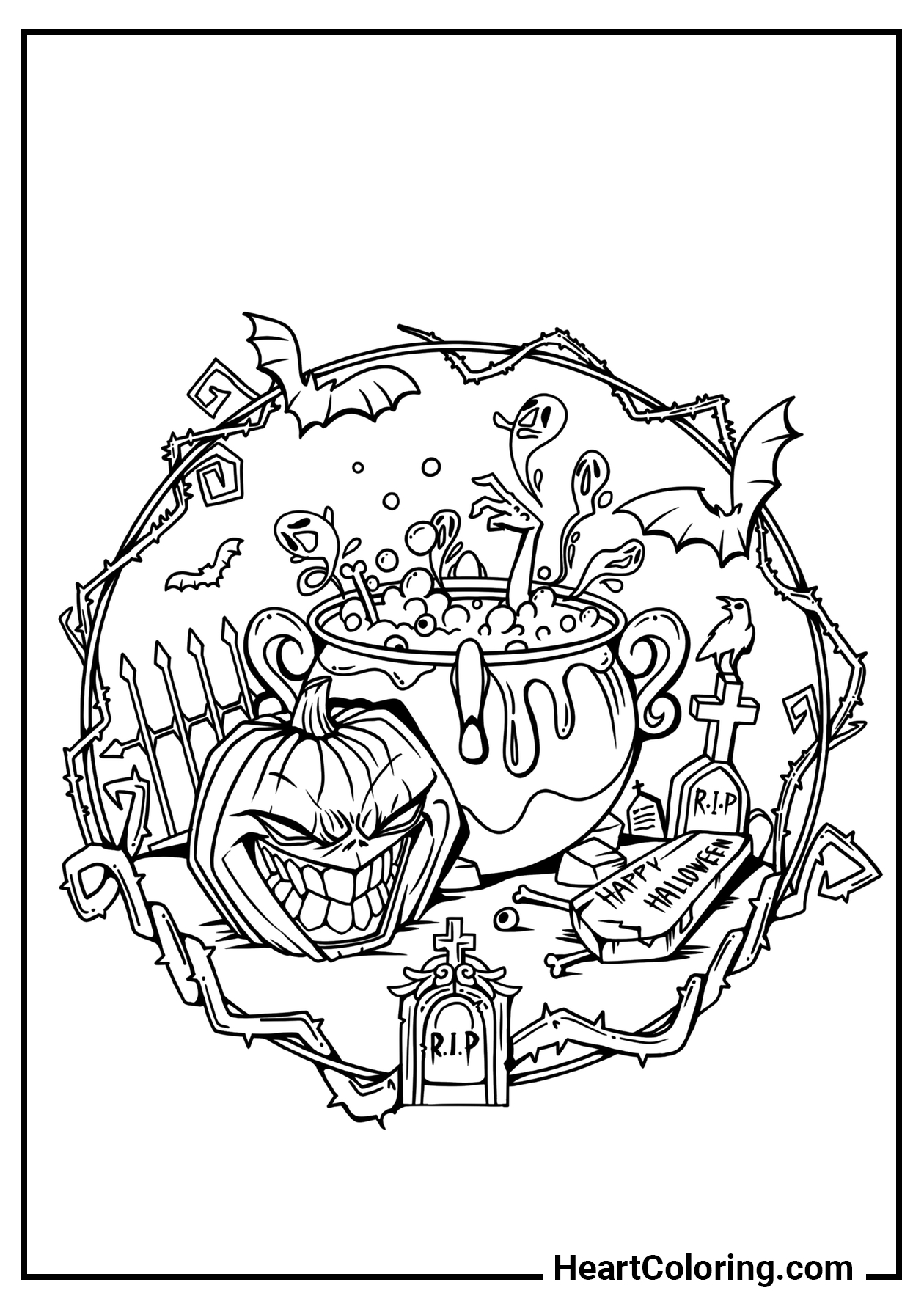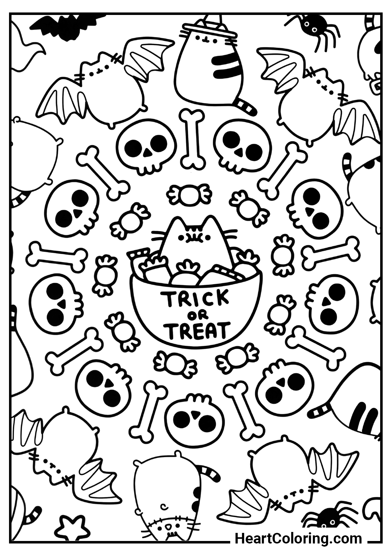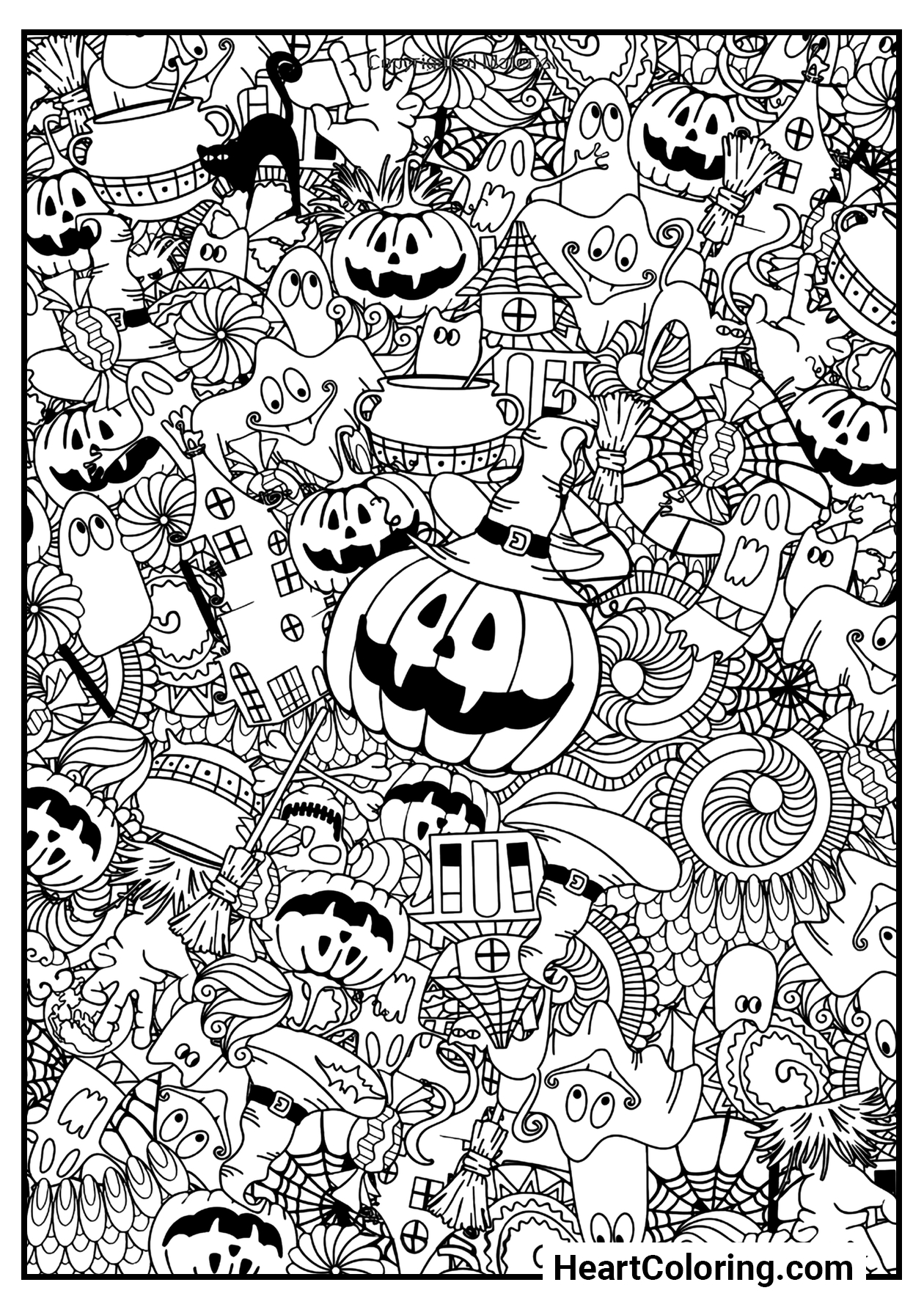 Загружайте целую подборку — раскраски на Хэллоуин можно скачать одним файлом в формате PDF, или выбирайте любимые по отдельности.