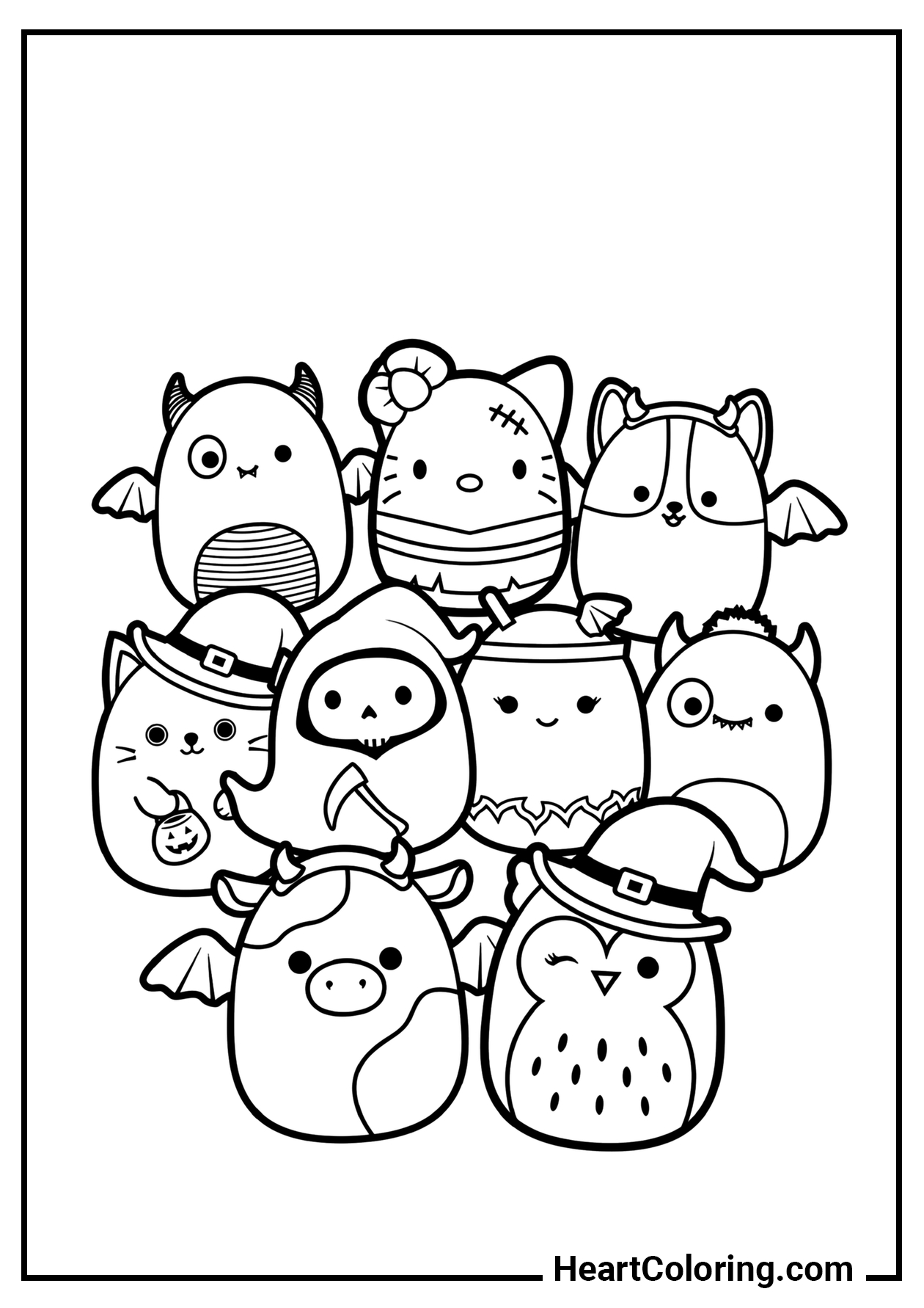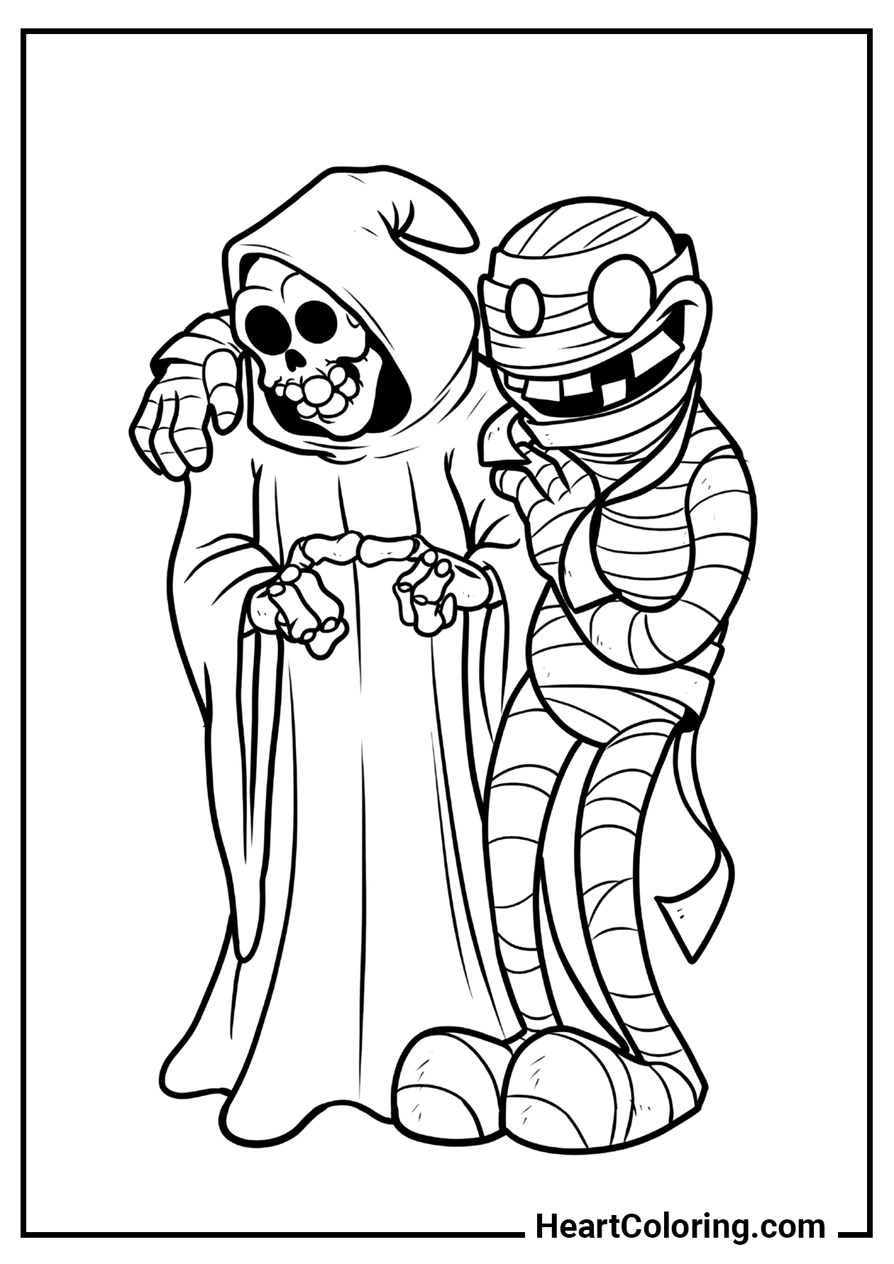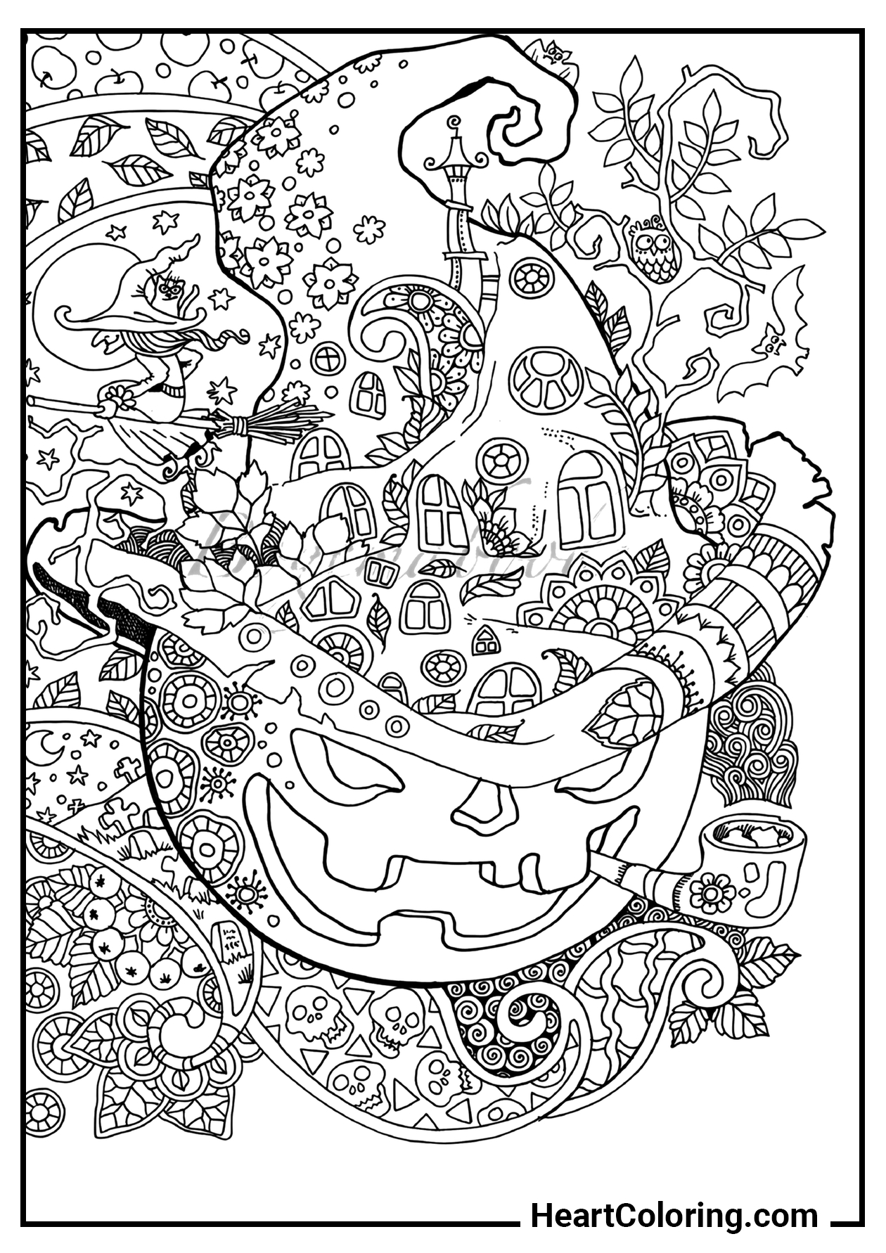 Загружайте целую подборку — раскраски на Хэллоуин можно скачать одним файлом в формате PDF, или выбирайте любимые по отдельности.