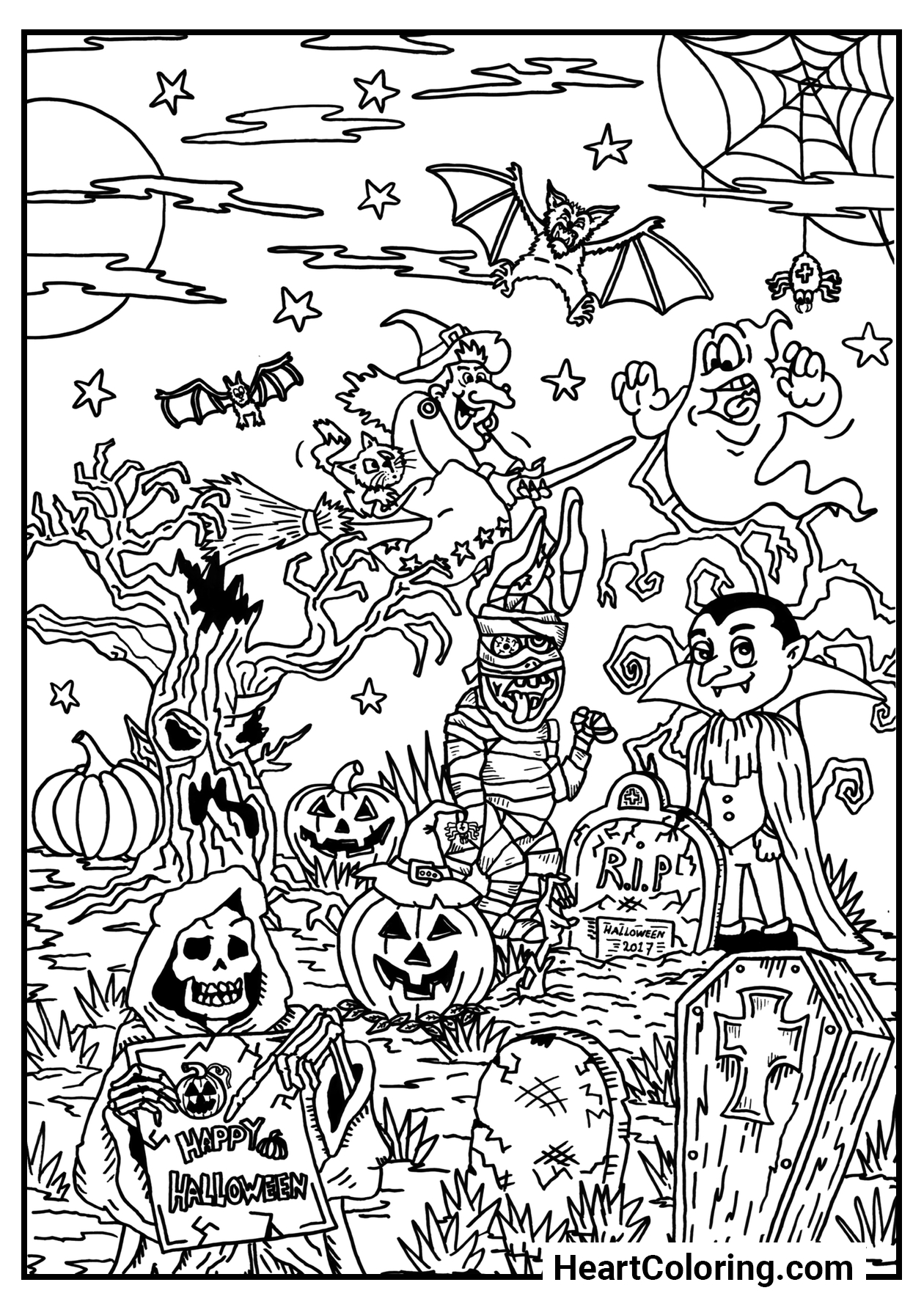 Хэллоуин — время, когда даже самые обычные картинки оживают и становятся немного волшебными. На этой странице собраны лучшие бесплатные раскраски на Хэллоуин: жуткие улыбающиеся тыквы, летучие мыши, привидения, ведьмы и другие герои осеннего праздника. Скачивайте в PDF, распечатывайте на А4, раскрашивайте онлайн на HeartColoring.com!